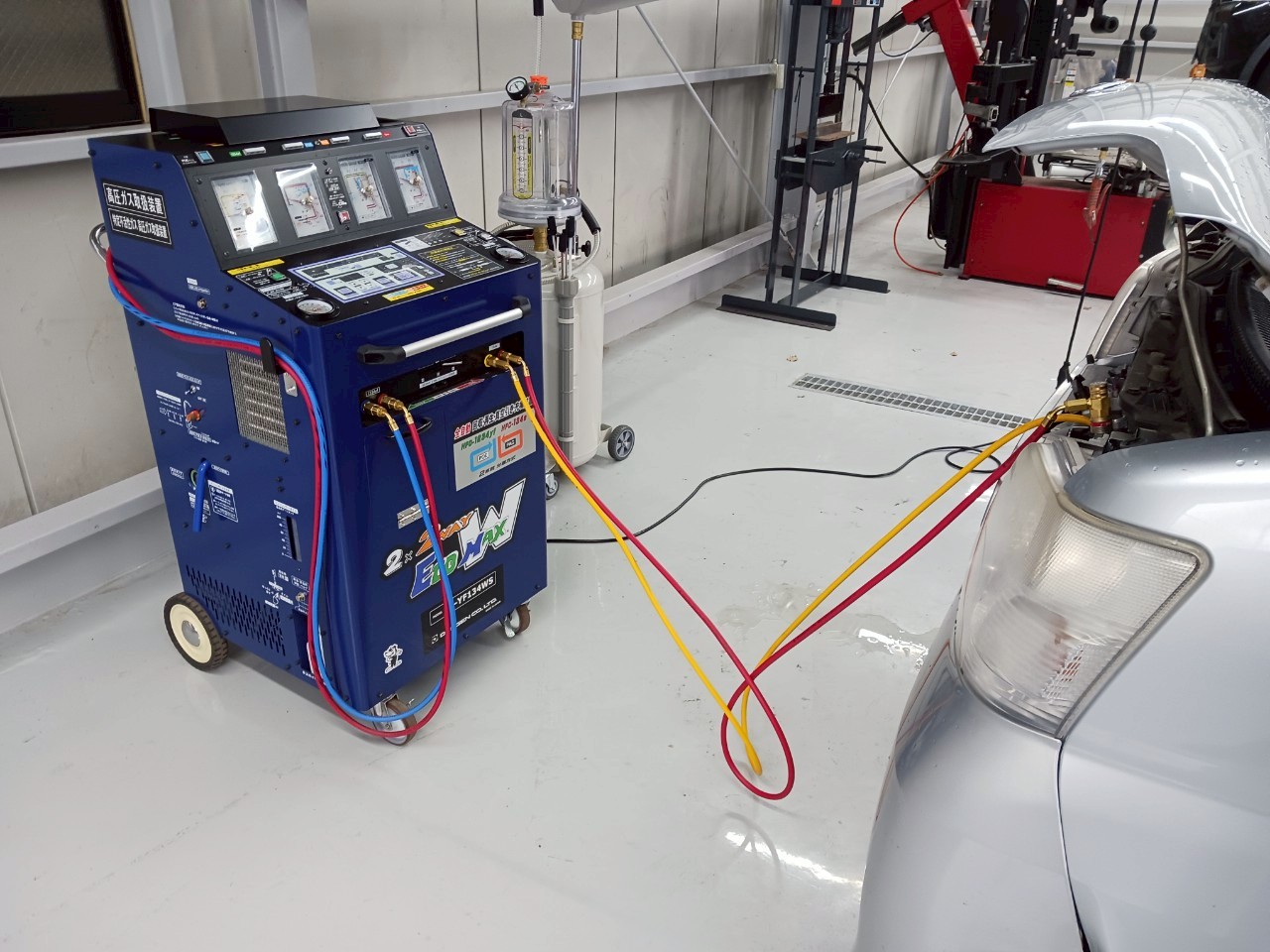- エアコンガス回収: 車に残っているエアコンガスを安全に回収します。この際、システム内の不純物も同時に除去されます。