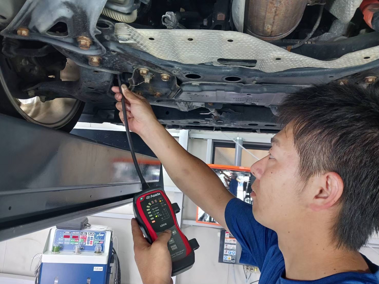 - ガス漏れ点検: 専用機器を使って、配管やコンデンサー、コンプレッサーなど、エアコンシステム全体にガス漏れがないか詳細にチェックし、異常があれば診断します。